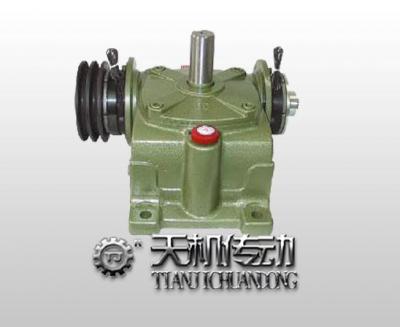 天機(jī)傳動(dòng)電磁離合剎車減速機(jī)即蝸輪減速機(jī)附剎車離合器TJ-BKVCS型為臥式安裝型,輸出軸朝上。由一個(gè)DC24V干式電磁離合器、一個(gè)DC24V干式電磁制動(dòng)器、一個(gè)單極臥式蝸輪蝸桿減速機(jī)構(gòu)成,構(gòu)成多用途、多功能、適用性強(qiáng)的一體化組合。用皮帶輪與驅(qū)動(dòng)(電機(jī))連接,皮帶輪裝置干式電磁離合器一端,與電樞板聯(lián)接在一起并固定輸入軸上。