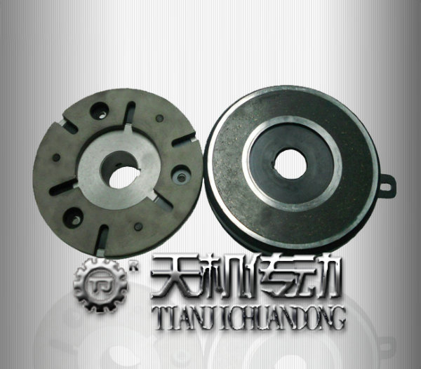天機傳動軸承安裝型電磁離合器由銜鐵(電樞板)、定子、轉子、板型彈簧片、磁性線圈、來令片、軸承、鋁導座等元件構成,統一使用DC24V,標準規格0.6-40KG。