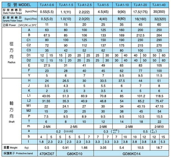 功為壽命概念)。下面是天機牌干式電磁離合器附導座的尺寸和參數: