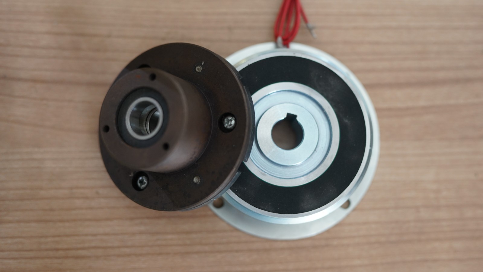 磁粉離合器將磁粉置于驅動部分和從動部分之間。離合器通電時,磁粉處于凝聚狀態,使離合器打開。離合器斷電時,磁粉處于松散狀態,所以離合器閉合。